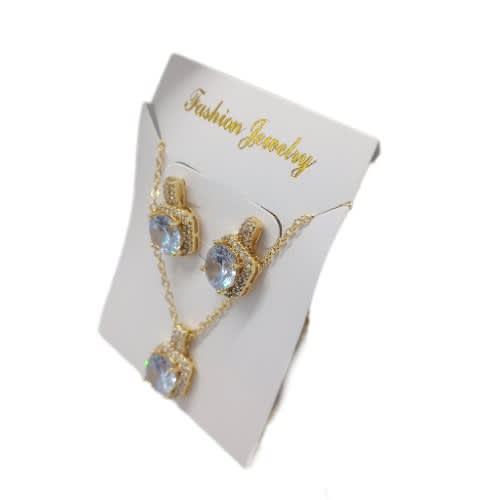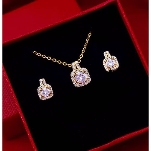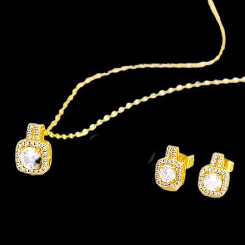 Buy Cubic Zirconia Square Stud Earring And Necklace Jewelry Set- Gold in Nigeria