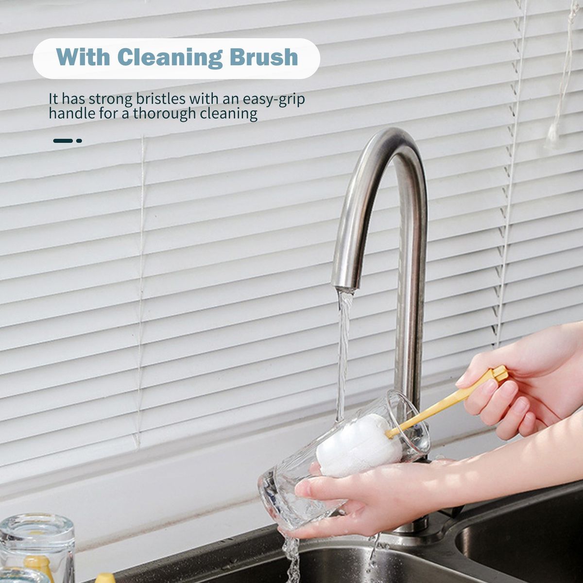 [With Brush]Bottle brush has strong bristles with an easy-grip handle for a thorough cleaning.