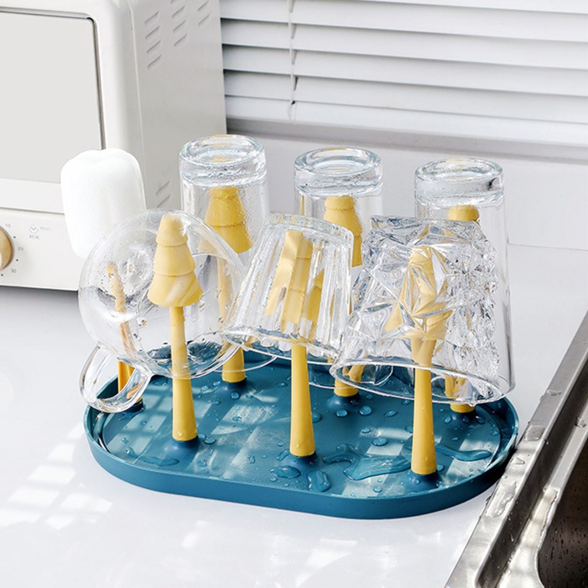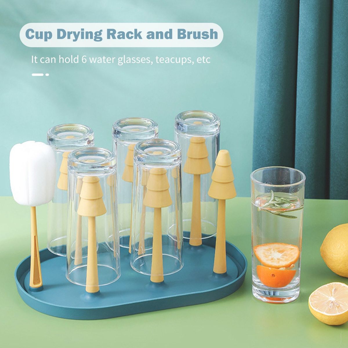 Cup drying rack and brush set fit up to 6 coffee mugs or teacups, milk bottles, drinking glasses, as well as pacifiers and other baby accessories, ideal for being placed on the kitchen counter, table, or cabinet storage.