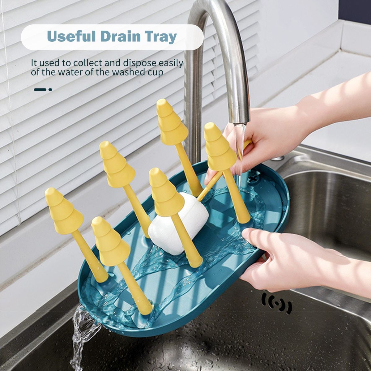 [Drain Tray]There is a drain pan at the bottom of the cup holder, used to collect and dispose easily of the water of the washed cup.