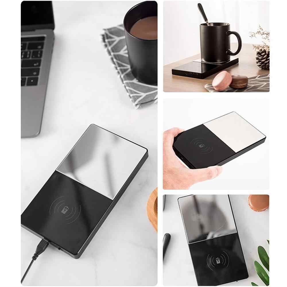 Multi-function Mug Warmer -- The mug warmer is also a wireless charger, and the mirror design make it more versatile, slim and portable. Easy to carry around.