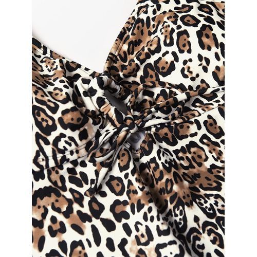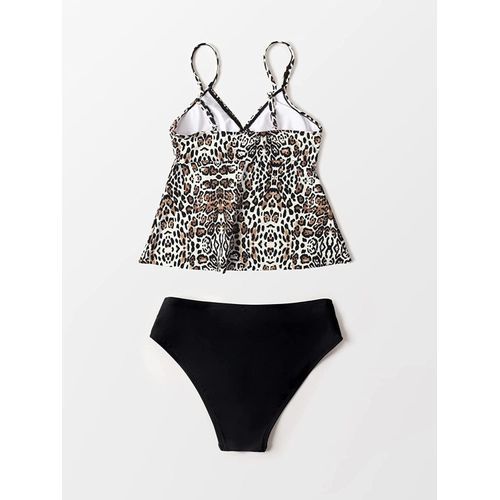 - Design: Add A Touch of Vintage and Flirtiness for the Beach in Our Brown Leopard Ruffle Tankini with Solid Bottom. Sexy Top Piece with Adjustable Spaghetti Straps Brings A Sense of Feminineness. About Cup Style: with Removable Pads