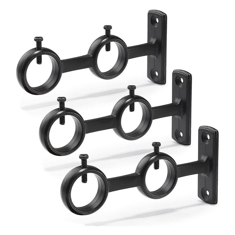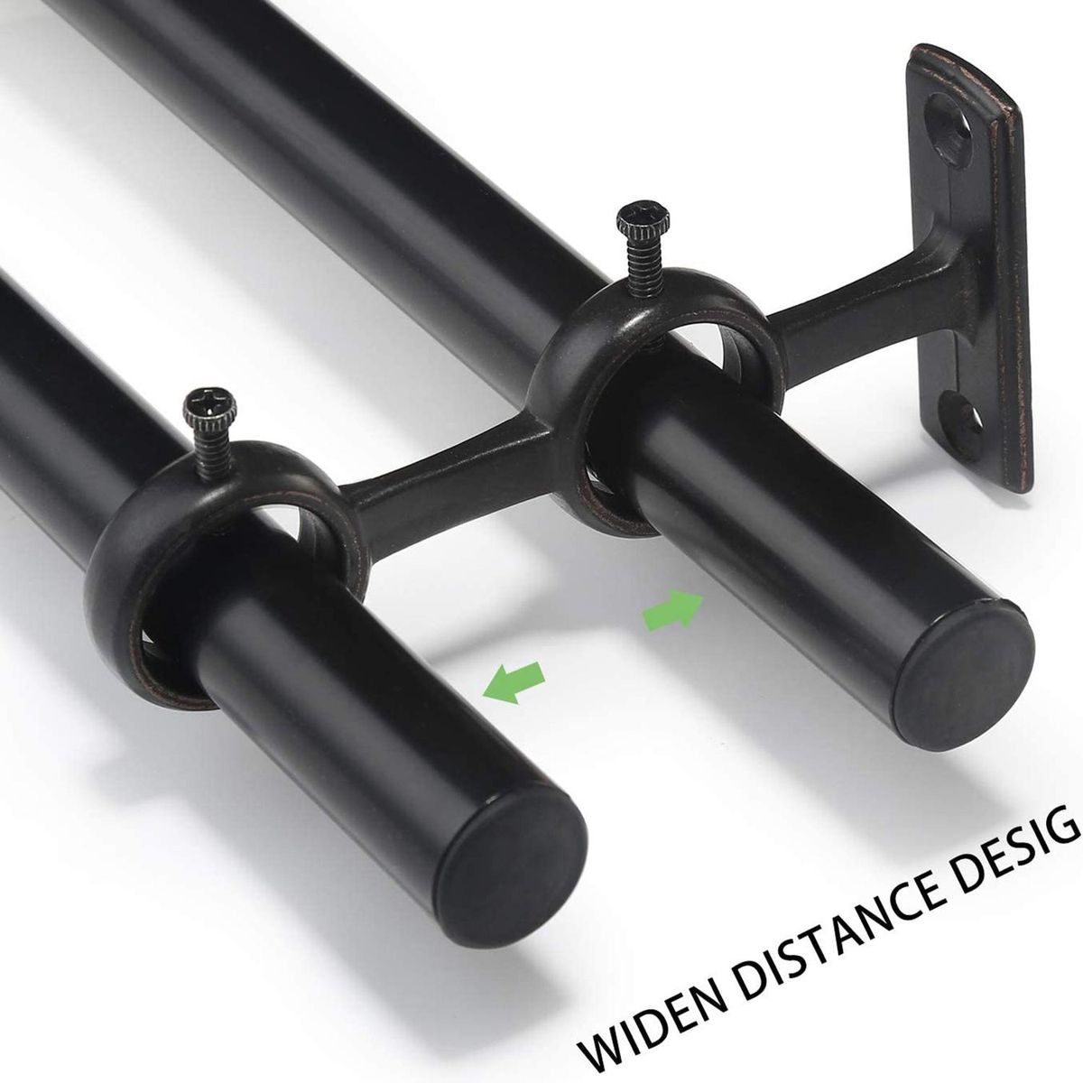 WIDEN DISTANCE DESIGN The design of curtain rod hanging brackets widens the distance between two rods even the thick double curtains can be pulled smoothly without any fights