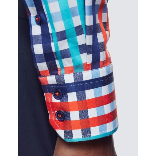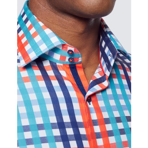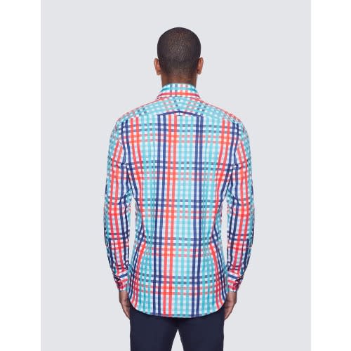 Buy Curtis White & Navy Multi Colour Gingham Check Relaxed Slim Fit Shirt - Low Collar in Nigeria