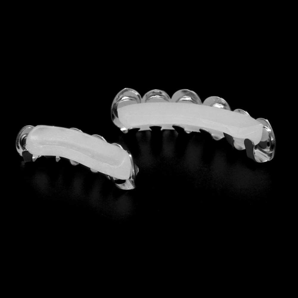 2.One size fits all, each grillz set can fit any teeth no matter how straight or crooked your teeth are. You can put them on and remove them easily.