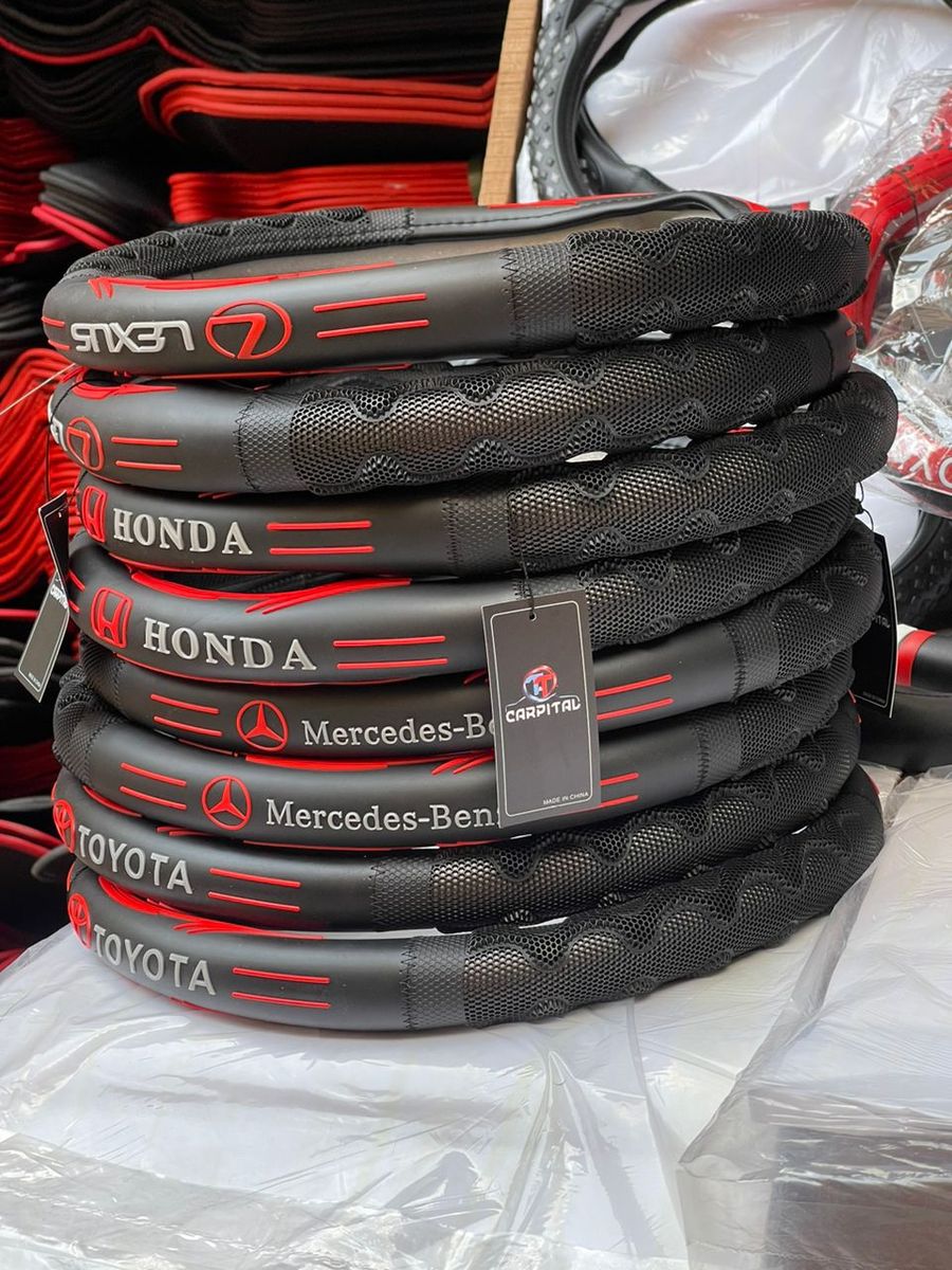 It's a customize Lexus steering wheel cover that's suitable for all Toyota cars and SUVs. it's made from high quality rubber material which is long lasting. It adds beauty and style to your car interior. It also helps cover stained, dirty or old steering wheel cover