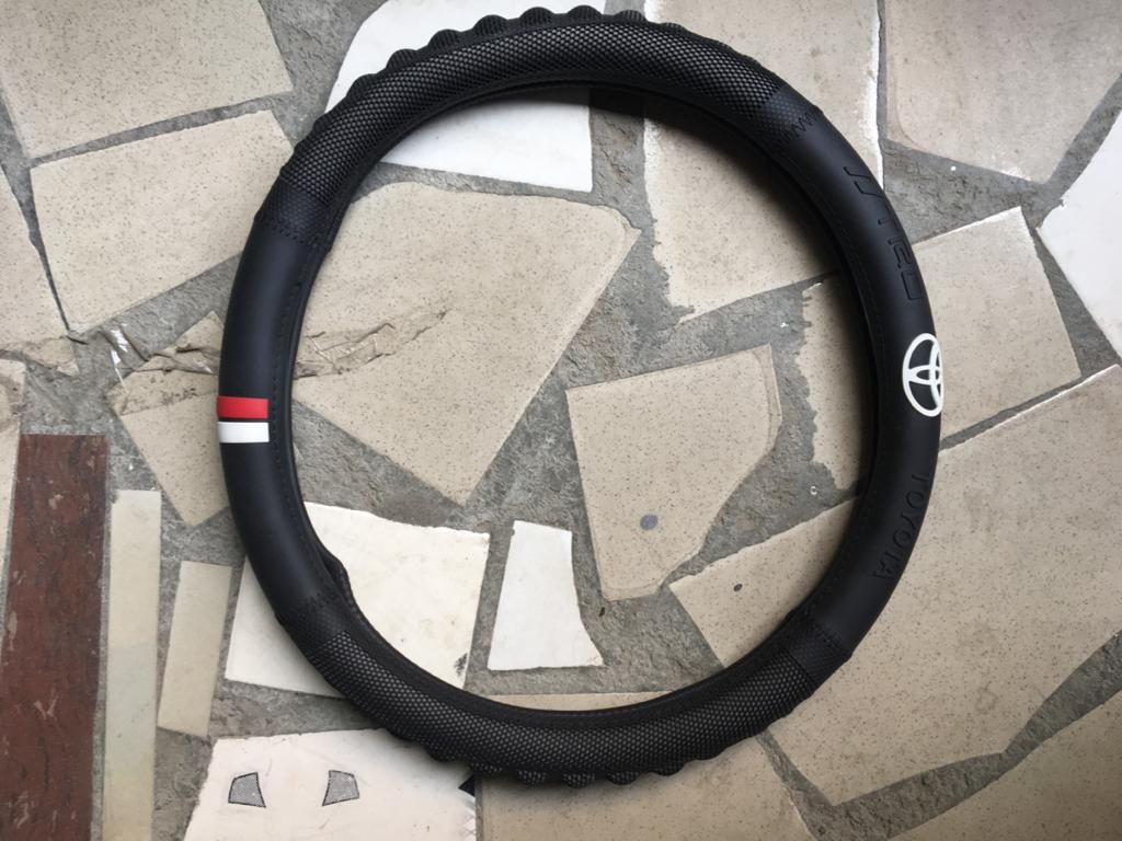 It's a customized Toyota steering wheel cover that's suitable for all Toyota cars and SUVs. it's made from high quality rubber material which is long lasting. It adds beauty and style to your car interior. It also helps cover stained, dirty or old steering wheel cover