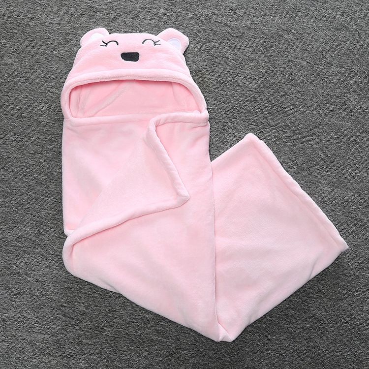 Cute Animal Cartoon Babies Blanket Kids Hooded Bathrobe Toddler Baby Bath Towel(Pink)