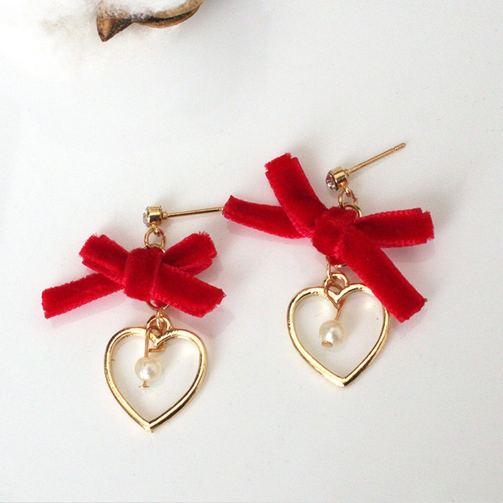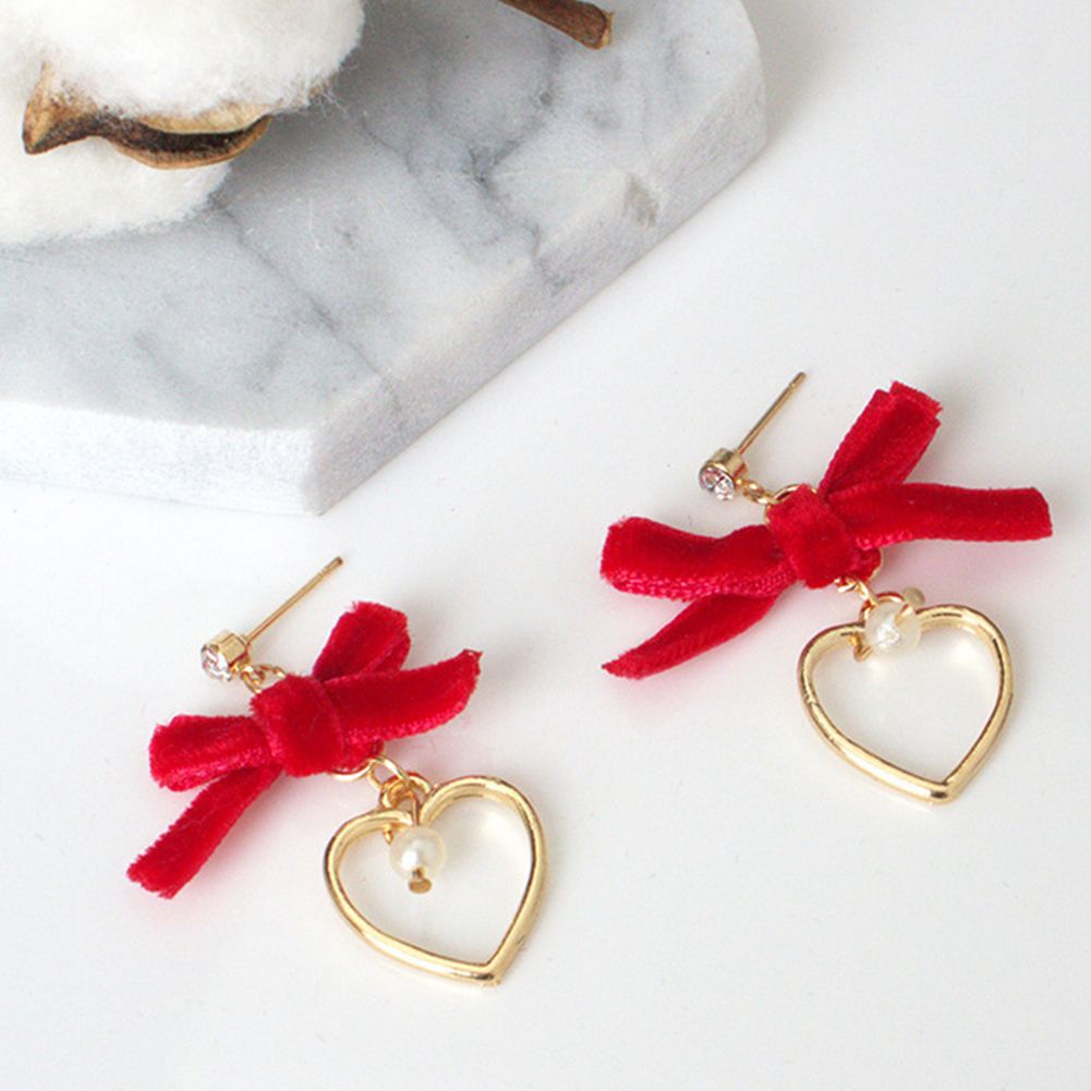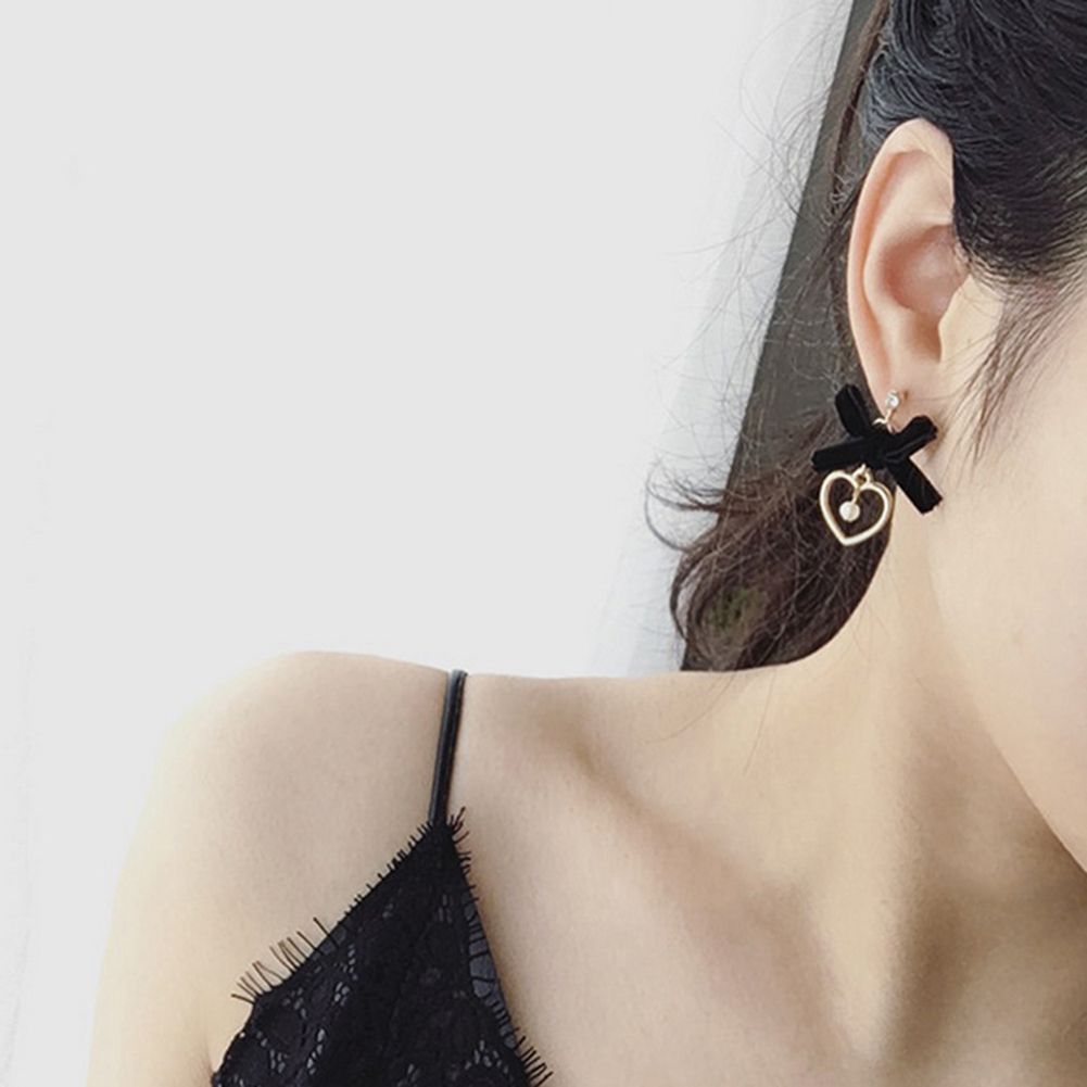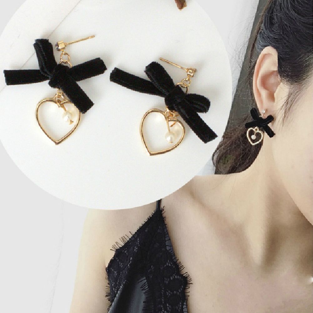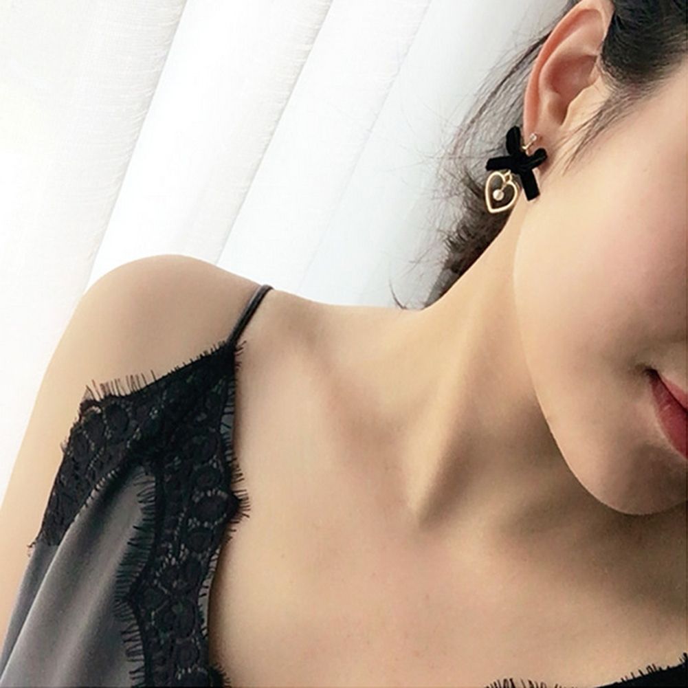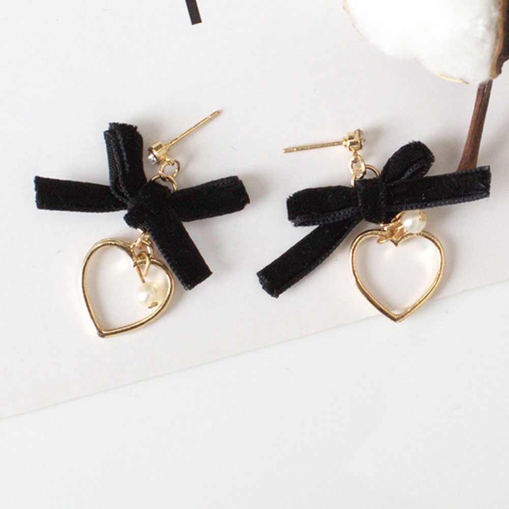 Features: Imitation Pearl Pendant, Bowknot, Hollow Heart, Dangle, Stud Earrings, Shiny Rhinestone