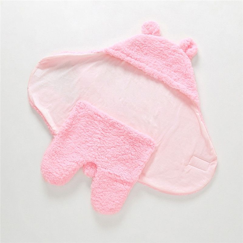 Cute Cartoon Bear Ear Cotton Baby Sleeping Blanket(Pink)