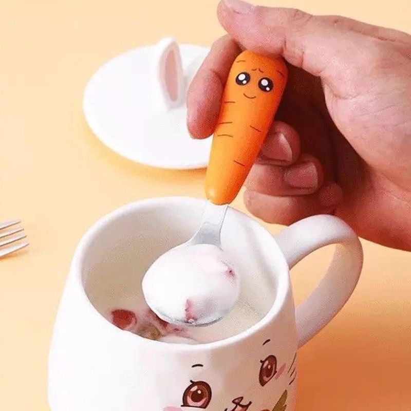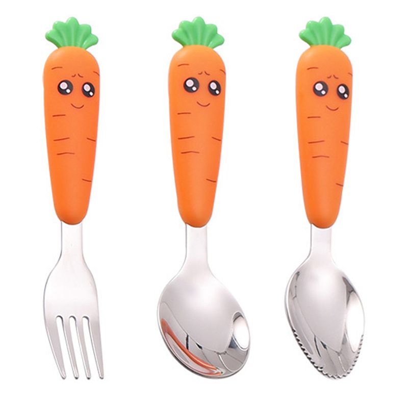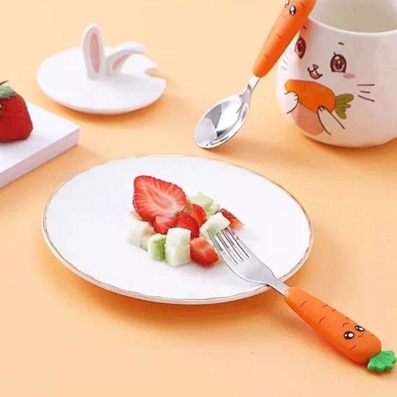 1X Cute Cartoon Carrot Cutlery Stainless Steel Cutlery Fork Spoon Set Dining Table Fork Mirror Polished Fork Travel Cutlery