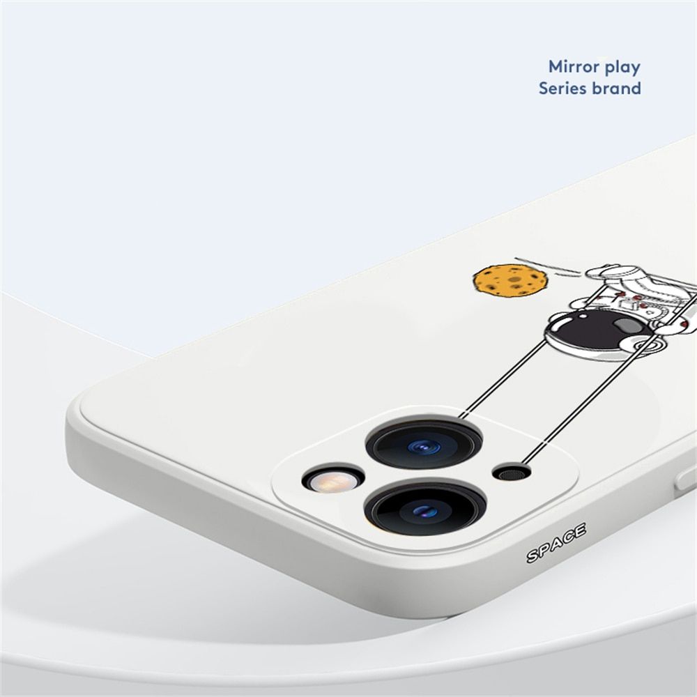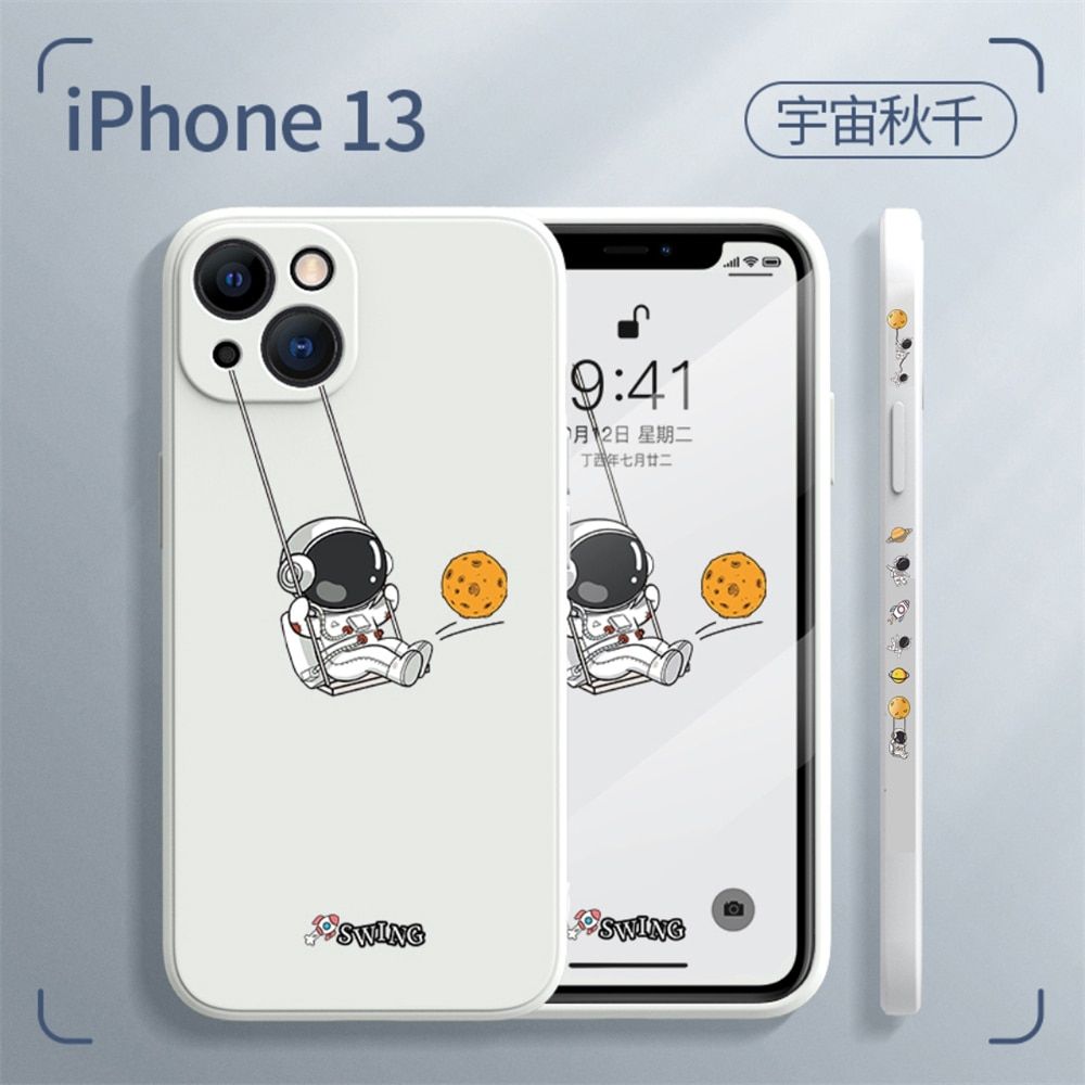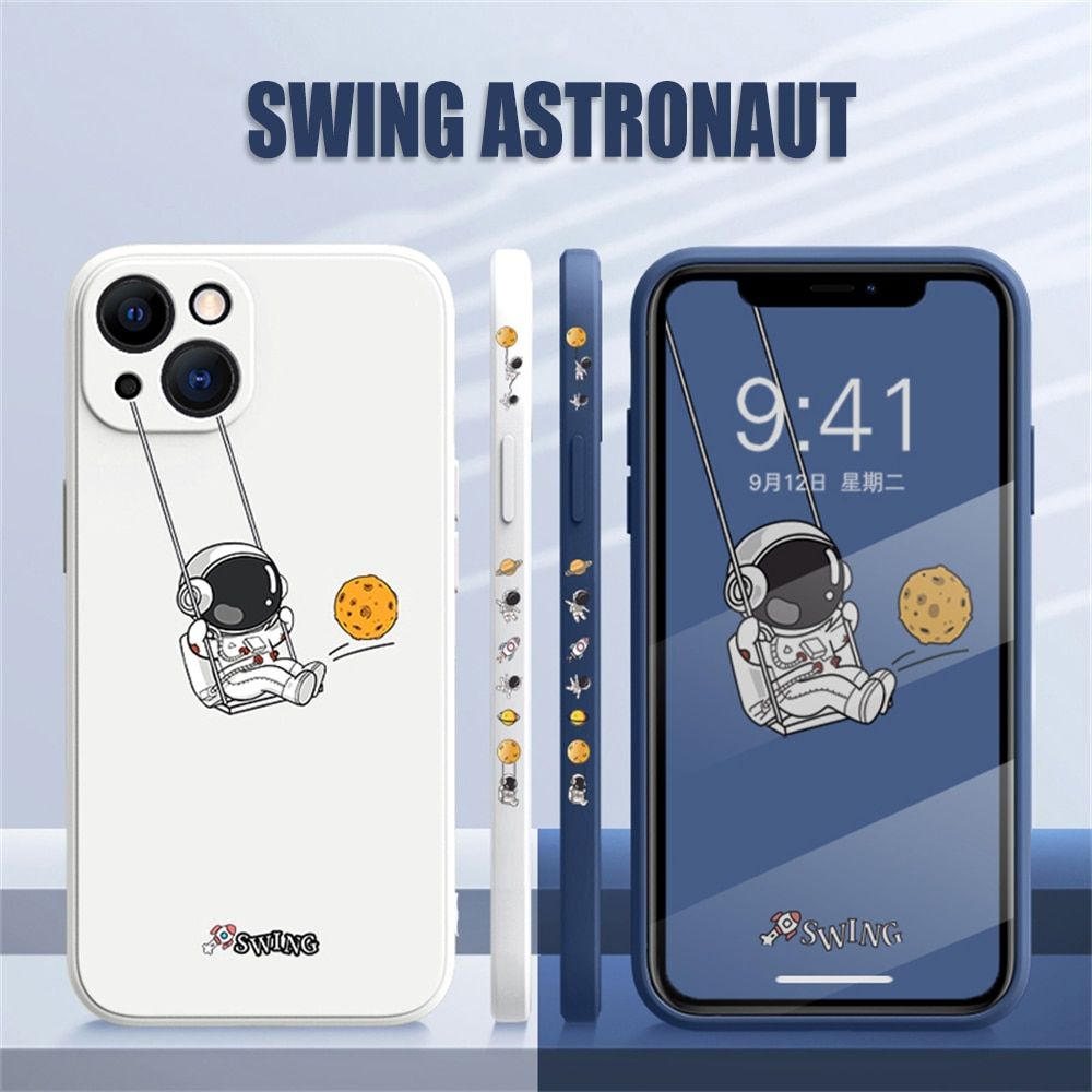 1X Cute Cartoon Swing Astronaut Silicone Phone Case For iPhone 14 13 12 11 Pro MAX X XS XR 7 8 Plus SE 3 Soft TPU Shockproof Cover