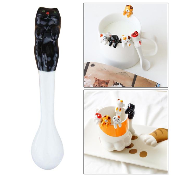 This kitten stirring spoon is made of ceramics and fired at high temperature.
