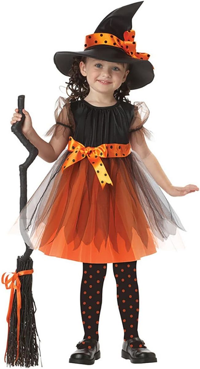 -Clothes Type: Kids Children Girls Halloween Witch Dress+Hat Children's Day Princess Party Dresses Carnival Cosplay Costume..It is perfect for Christmas, party, school stage show and year-around dress up fun,perfect for role play,stage costuming witches