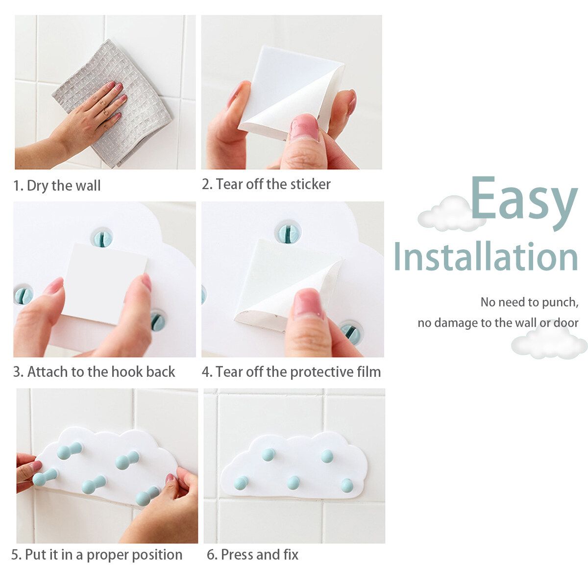 Buy Cute Cloud Moon Wall-mounted 5 Hooks Key Coat Towel Hanger Holder Decoration Blue in Nigeria