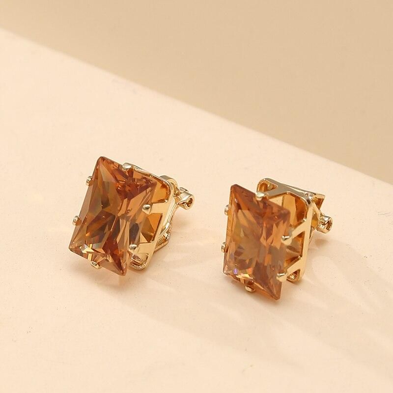 Buy Cute Female Crystal Yellow Stone Earring Fashion Boho Gold Color Rectangle Stud Earrings For Women Wedding Jewelry Gifts in Nigeria