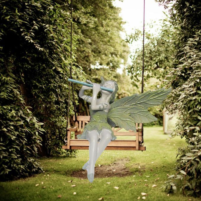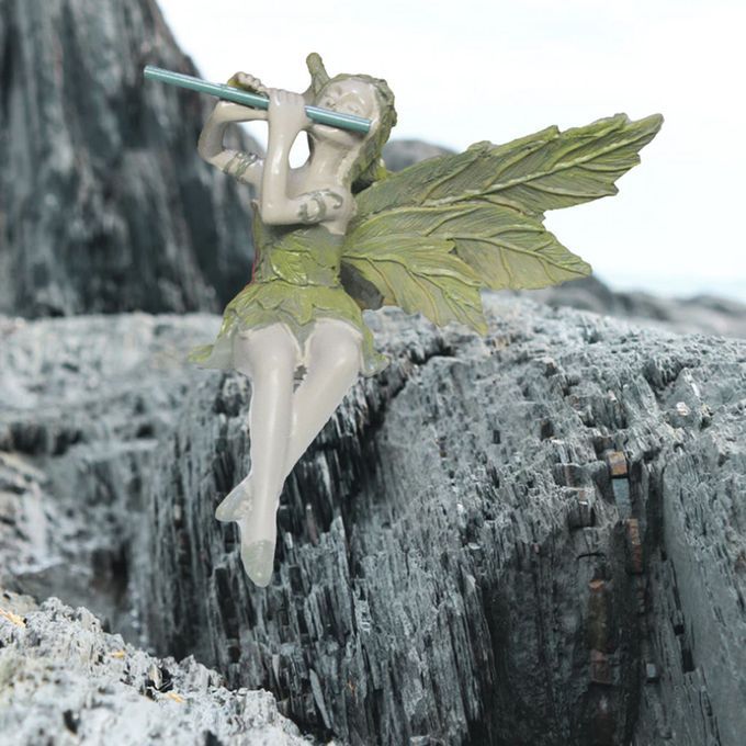 This delightful garden flute fairy statue sitting faery with wing figurine sculpture brighten any dark corner of your home and garden