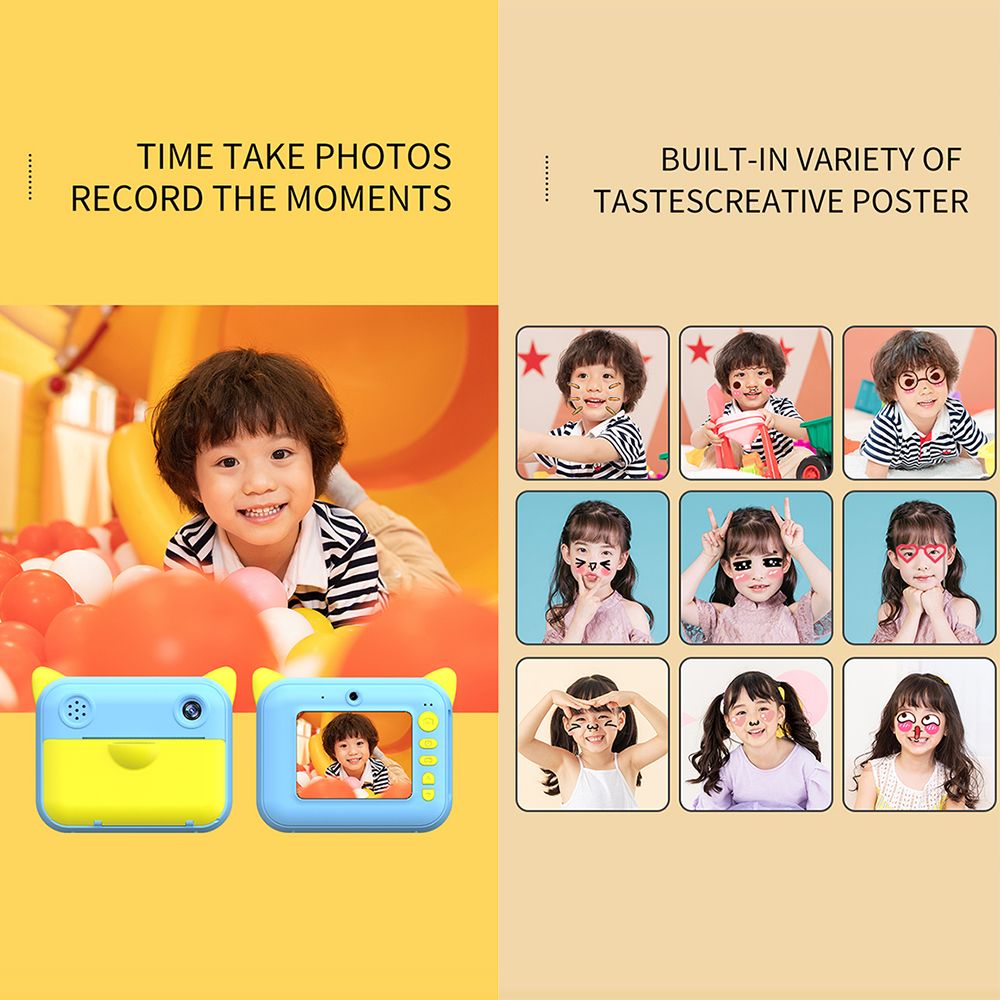【Instant Print Kids Digital Camera】Turn on the camera and press the print button,then the camera will print black and white instant photos immediately. Compatible with 57mm print paper.