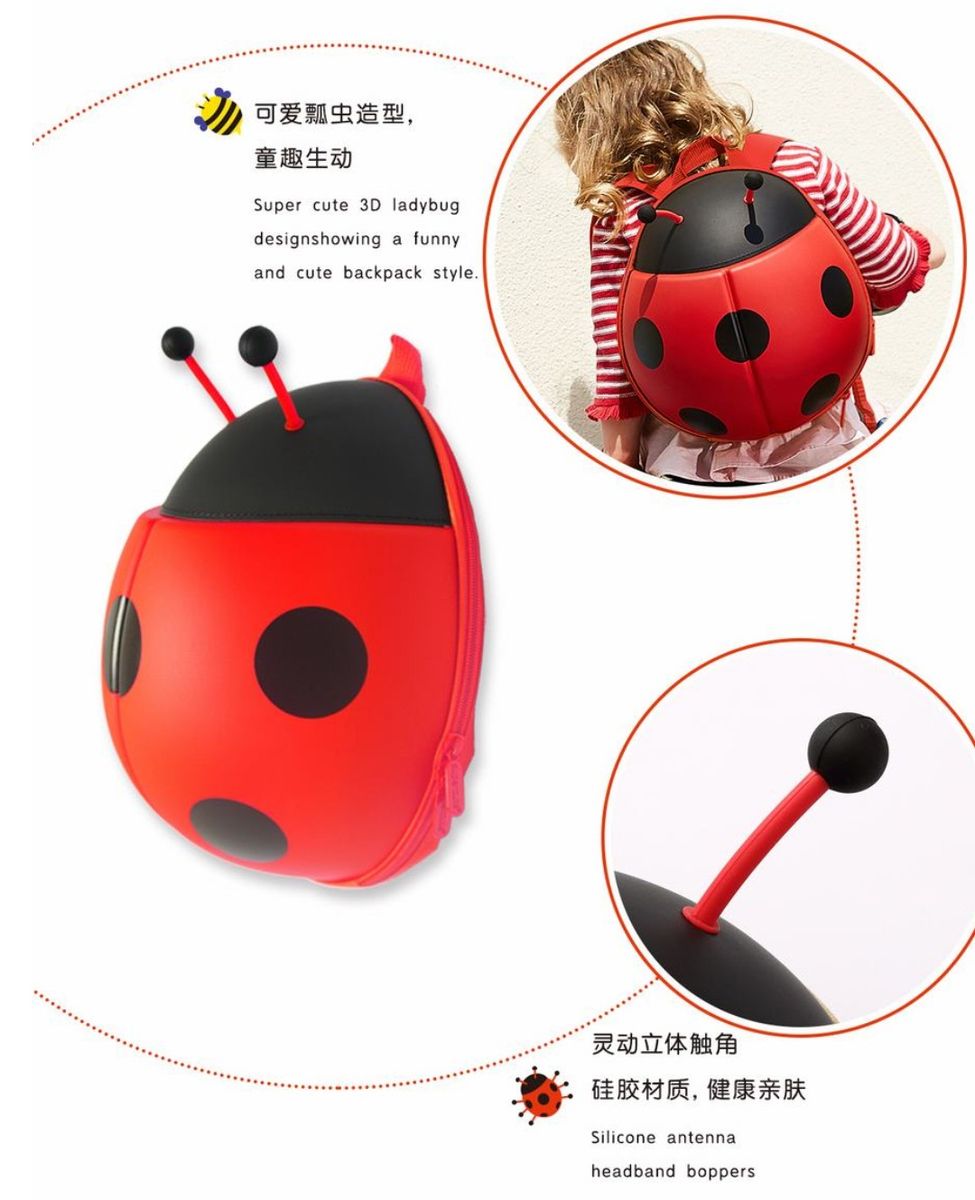 - This lightweight 3D mini Ladybug characters backpack has roomy interior pockets, comfy and reflective padded adjustable straps, and a nylon back panel. This means it will meet all your child's needs for daycare, pre-kindrarten or preschool. Looped top handle for tidy hanging.