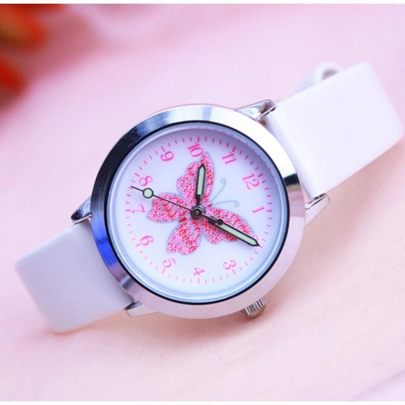 Buy Cute pink butterfly cartoon children's watch, leather watch sports quartz with luminous hands, birthday gift for boys and girls White in Nigeria