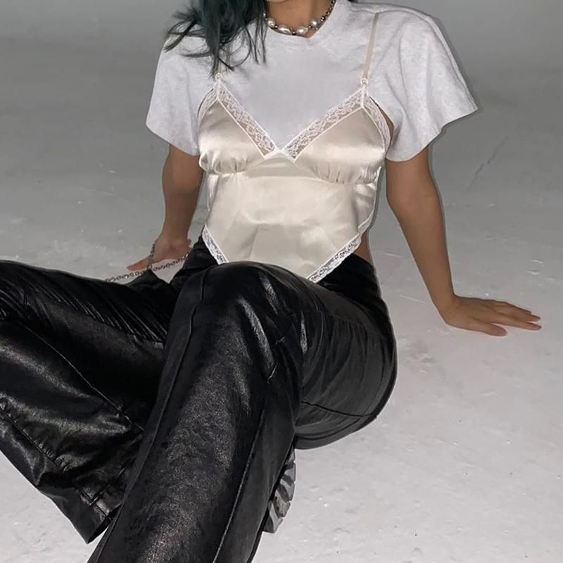 Cuteandpsycho-camisola de encaje con espalda descubierta para mujer blusa Sexy de los 90 con cuello en V Top con tirantes finos para discoteca Camiseta corta suave