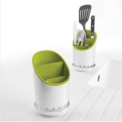 Keep your kitchen worktops clean and dry with the Dock cutlery drainer and organiser This cylindrical dock features tiered compartments to easily separate different items when drying your kitchen utensils. Designed with safety in mind, a designated slot keeps sharp blades shielded protecting your fingers and knives. The draining saucer, integrated with a pouring spout, prevents excess water from sitting and becoming odorous. Dismantle the Dock with ease to wash, or for a thorough clean, place in the dishwasher.