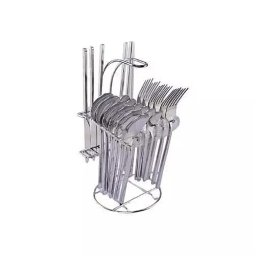Flatware cutlery set include 6 dinner knife, 6 dinner fork, 6 dinner spoon, 6 teaspoon, 1 flatware rack