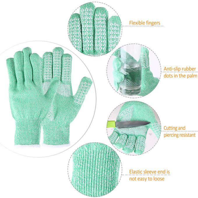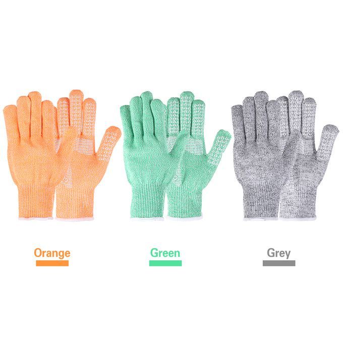 This is a pair of practical cutting resistant gloves often needed in our daily life. With the wear resistant material plus anti-slip palm and elastic cuff design, they are safety for protecting your hands when you are cutting, working, decorating, gardening or farming.