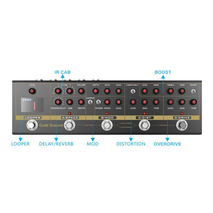 Guitar multi-effects pedal with 72 IR cabinets simulation, wide range of sound.