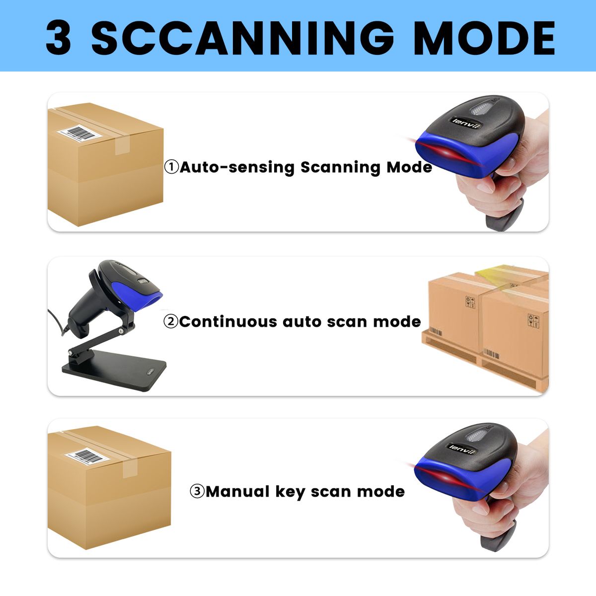 【Durability】 Built-in 2200 mAh battery. After charging, the wireless barcode scanner can work for 8 hours.Before use, please use a 5V/1A power adapter to fully charge the scanner to ensure that the scanner has sufficient power to make it work normally.