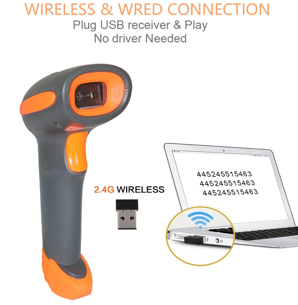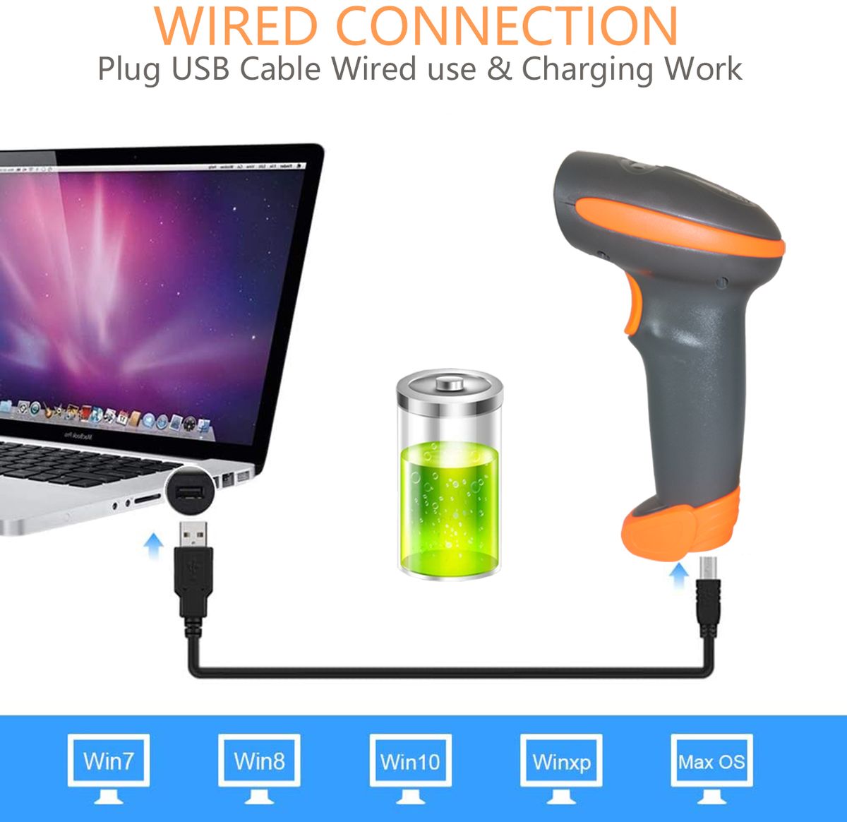 LENVII Wireless and USB Wired Barcode Scanner 2 in 1 Handheld Barcode Reader