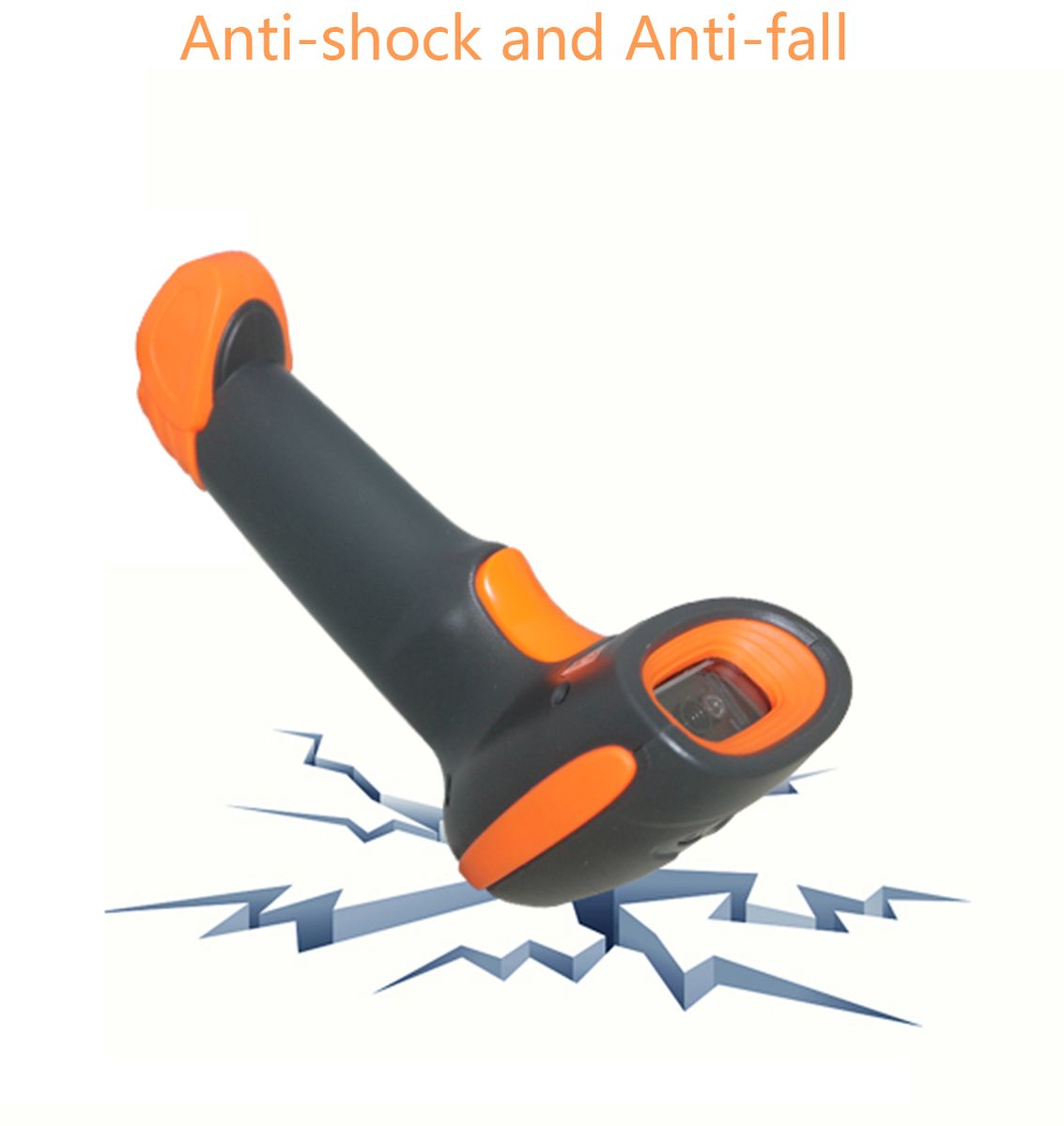 With a built-in 2200mah battery, the wireless barcode scanner has a scan life of 12,000 hours, and the scanner can work for about two weeks or 30,000 times after 5 hours of full charge.
