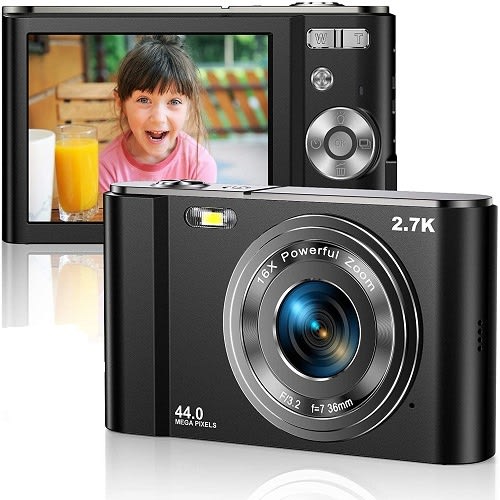 Multi-functions Compact Camera: This camera with 2.7K UHD video resolution,50MP (max) picture pixel,8MP CMOS image sensor,2.8 inch LCD screen,16X digital zoom,pause function,built-in fill light,anti-shaking,continuous shooting,face detect,smile capture,self-timer,internal microphone and speaker(record sound videos),USB 2.0.This is a cost-effective entry-level ordinary camera,easy to operate,ideal gift for kids,adult,seniors,students,beginners.