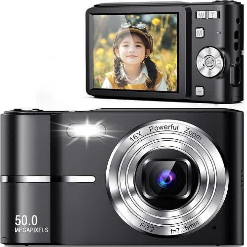 Portable Compact Camera - Digital Camera is equipped with a high-performance CMOS sensor. It can take up to 50MP photos and record FHD 1080P videos. As a compact camera, it offers both portability and pocket size signs,it & rsquo;s easy to carry and go out anytime.