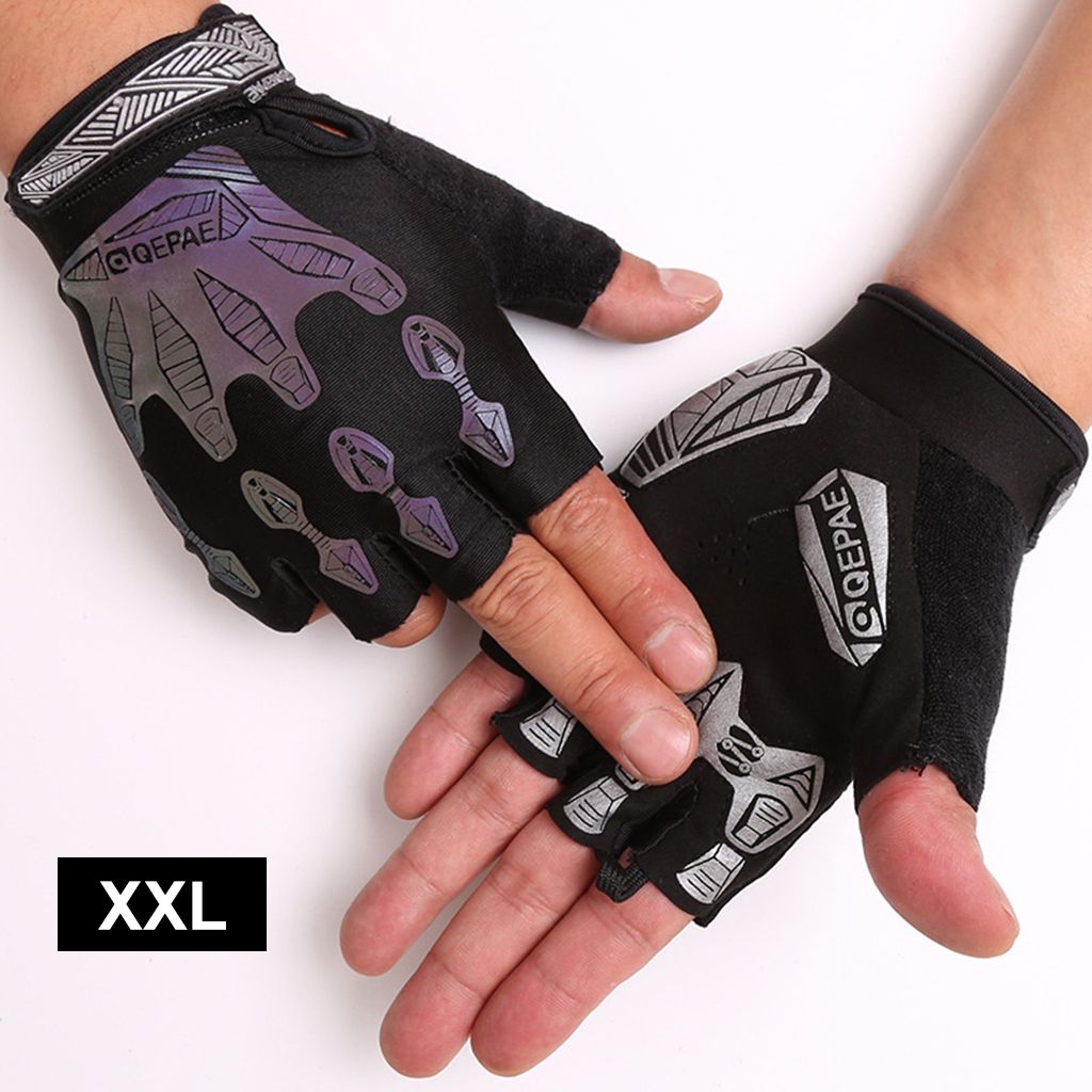 Breathable Fabric&Comfortable Fit:Made of high elastic microfiber and knitted mesh fabric, breathable and comfortable to wear.With Anti-slip suede on the palm part, and widened sticker, special elastic fabric patch at the wrist part, it can make your hands complete relaxed and comfortable in biking sport.Thicken Shock Pads:Extra thicken paddin cycling at palm part,non-slip silicone surface material,relieve pain and fatigue with super shock absorption effect.They can reduce the numbness and ease your palm fatigue on your biking road.WEAR RESISTANT SOFT Micro-fiber Cloth:Highly absorbent on outside thumb part, which can easily to wipe sweat .durable and functional Micro suede Palm for perfect fit, increase the grip.Moisture-wicking mesh keeps your hands cool and dry comfort.EASY-OFF Hooks:Pull tab on your finger helps you get off your easily,with adjustable wrist sticker,the cycling can wrap tightly around your wrist with no bulky and stiff feeling, allow movement and dexterity.MULTIPURPOSES DESIGNED: Reflective, Perfect for both men and women, machine washable, Ideal for cycling, hiking, climbing, camping, motorcycle drivingand many more outdoor activities.