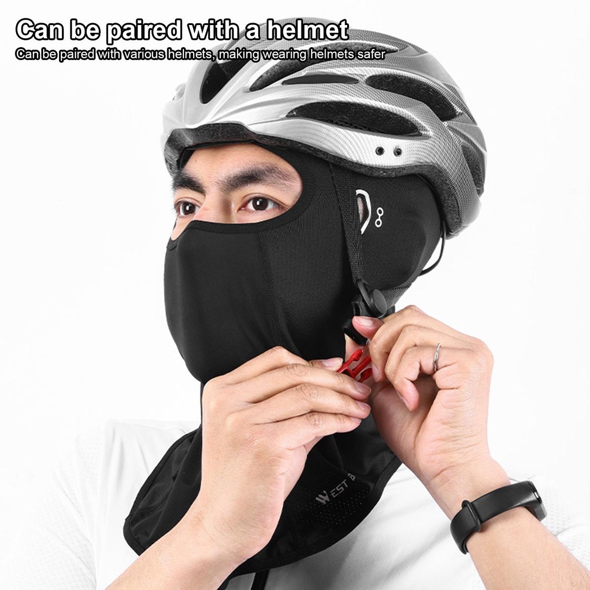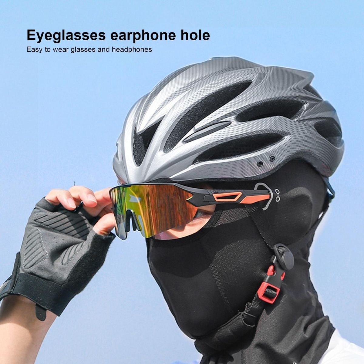 Designed with eyeglass holes, this cycling headgear makes near-sighted glasses and cycling glasses equally suitable. What's more, it can wrap the head face and neck, making dustproof shade and resist UV rays.