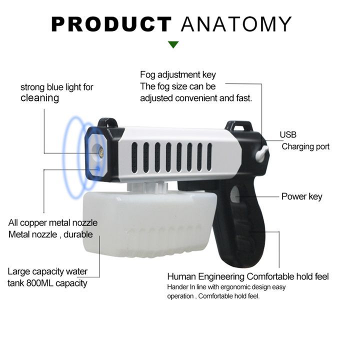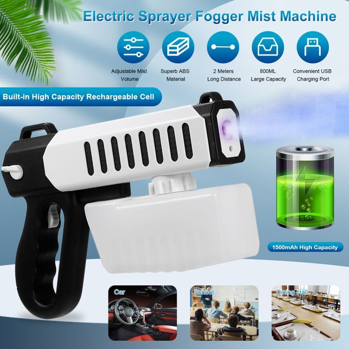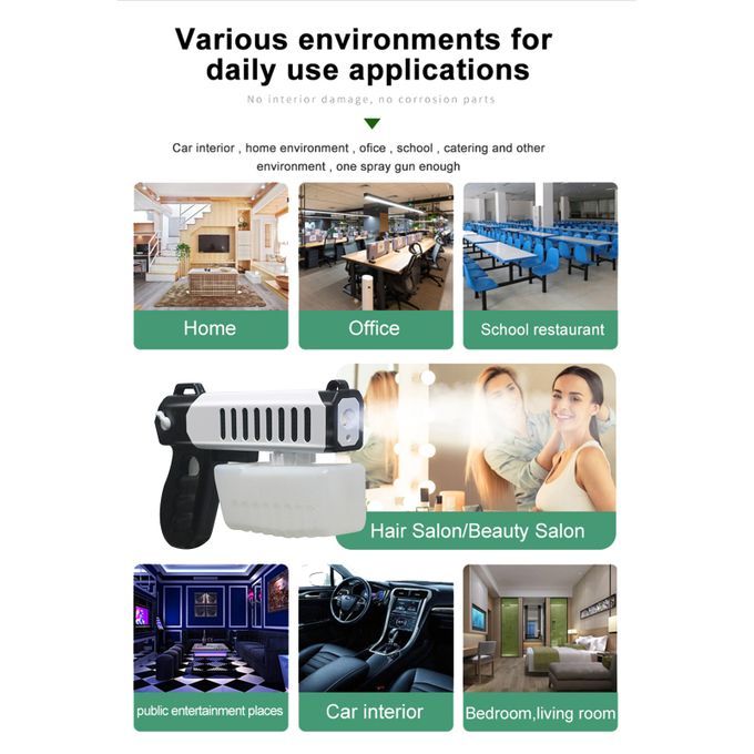 Portable electric fogger machine is portable for its ergonomic design. Up to 2 meters long distance spraying distance and built-in 1500mAh high capacity rechargeable cell for endurable use. What are you waiting for? Nice assistance for cleaning & daily use.
