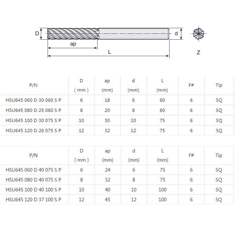 Name: Standard long-angle milling cutter with six edges