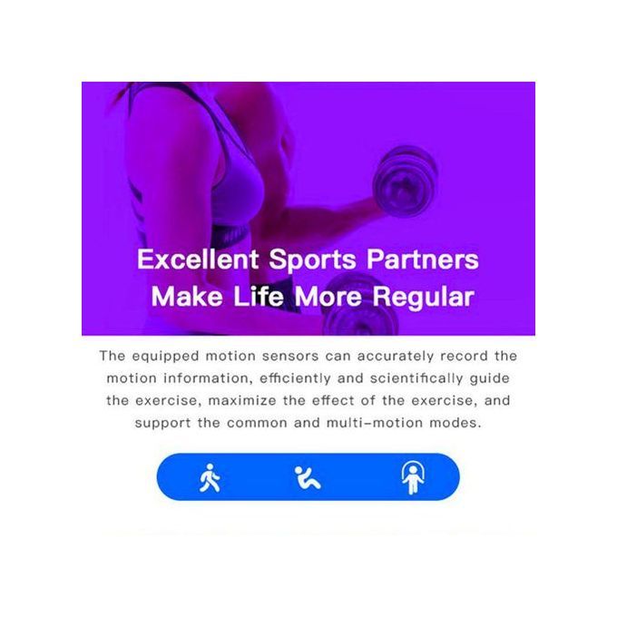Wristwatch function1. Support Bluetooth 4.0, Android 4.4 +, IOS 8.4 +2. Touch the screen to control the wristwatch3. Steps,calorie,distance : When exercising, it can record the number of steps, the calories burned, running trajectory and the distance to the destination.4. Heart rate monitor : It will accurately monitor and record your heart rate.5. Blood pressure monitor : It will accurately monitor and record your blood pressure.6. Sleep monitor : When sleeping, it can monitor the time and quality of sleep.7. Sedentary reminder : Set the sedentary reminder time, it will vibrate to remind you to rest.8. Alarm clock9. Weather forecast10. Music Play Control11. Remote control photography : Within 10 meters, you can shake it to control the phone to take pictures.12. Message and call reminder : When the phone receives a call or a message, it will vibrate to remind you.13. 10 days standby time. Wristwatch dial:Wristwatch movement type : SmartWristwatch battery : 170 mAhWristwatch dial shap e : RectangleWristwatch display type : LEDWristwatch case material : AlloyWristwatch dial window material : GlassWristwatch dial color : Black WatchbandWatchband material : Silicone/Stainless SteelWatchband clasp type : BuckleWatchband color : Black / white / pink Size and weightWristwatch length : Approx 25 CMWristwatch dial diameter : Approx 4.1 CM X 3.4 CMWristwatch dial thickness : Approx 1 CMWatchband width : Approx 2 CMWristwatch weight : Approx 31 G PackageWristwatch X 1charging cable, X 1manual, X 1packaging box, X 1 Waterproof specification:You can wash hands and face with wearing it.But it doesn't support bathing, swimming, diving.