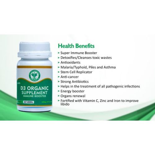 D3 ORGANIC is a detoxifier, super immune booster and an anti-oxidant. It also functions in the following ways: