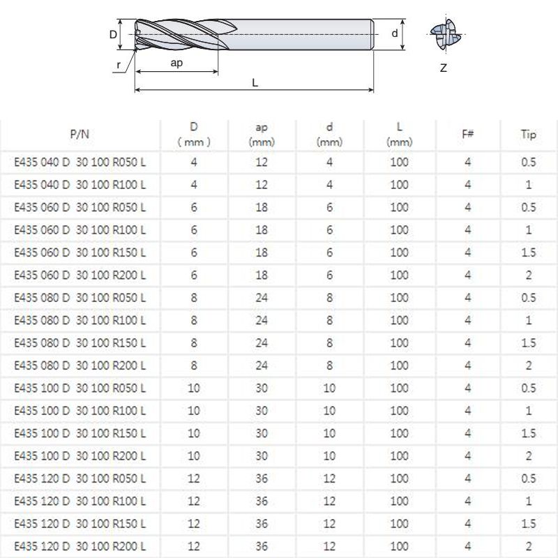 Name: Four Flute Extended Fillet Type Milling Cutter