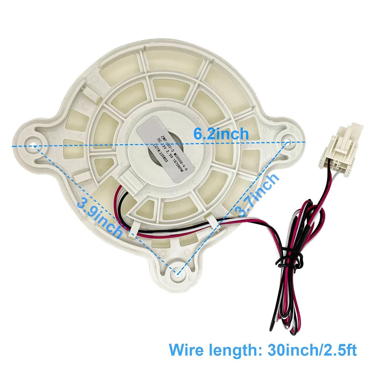 [Motor Specifications]DC 12V, 2.5W, 0.12A, 1870RPM. Overall size: 6.2x5.39x2.16inch. Motor diameter: 4.72inch. Replacement part for refrigerator evaporator fan. The fan circulates through the food compartment for efficient cooling, lower noise and long service life.