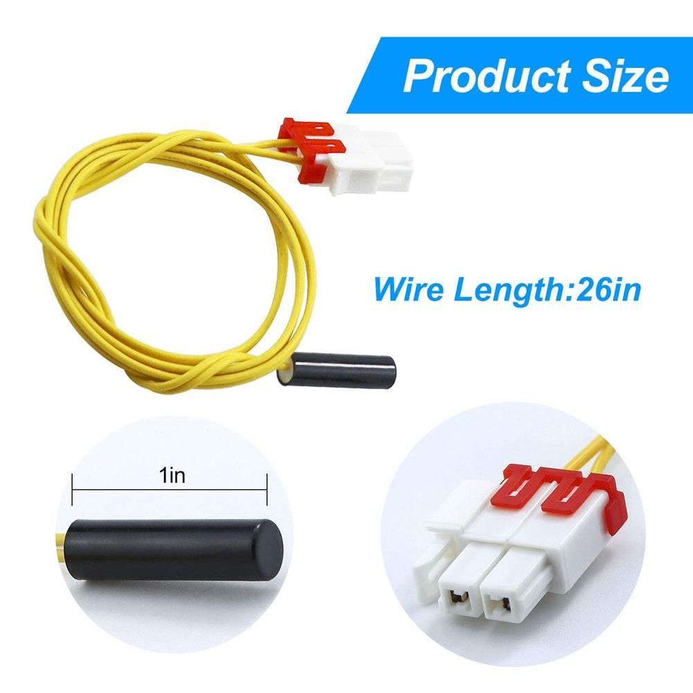 Defrost temp sensor: senses the temperature inside the refrigerator and sends information to the electronic control, while come with the longer wire, this means you're able to use it for the short and long style sensor.