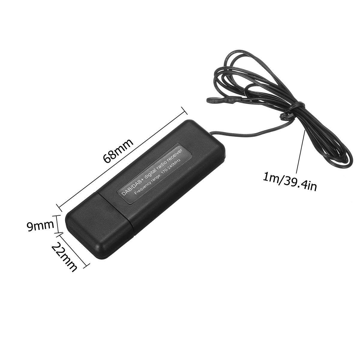 Feature: 1. Suitable for BT speaker 2. Suitable for home combination speaker 3. Applicable to all devices that read USB products Specification: Name: DAB Digital Radio Receiver Material: ABS plastic Transmission distance: 10m Interface type: USB Receiving method: USB receiving format: MP3 Applicable : bluetooth speaker Home combo speaker Any product with read USB function Frequency rang: 170-240MHz Maximum : 5V Dimensions: 68x22x9mm /2.7x0.9x0.4in Line length: 1m/39.4in Package Included: 1 x USB DAB/DAB+Digital Radio Receiver