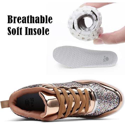 Buy Dadawen Women's Glitter Platform Wedge Sneakers - Gold in Nigeria
