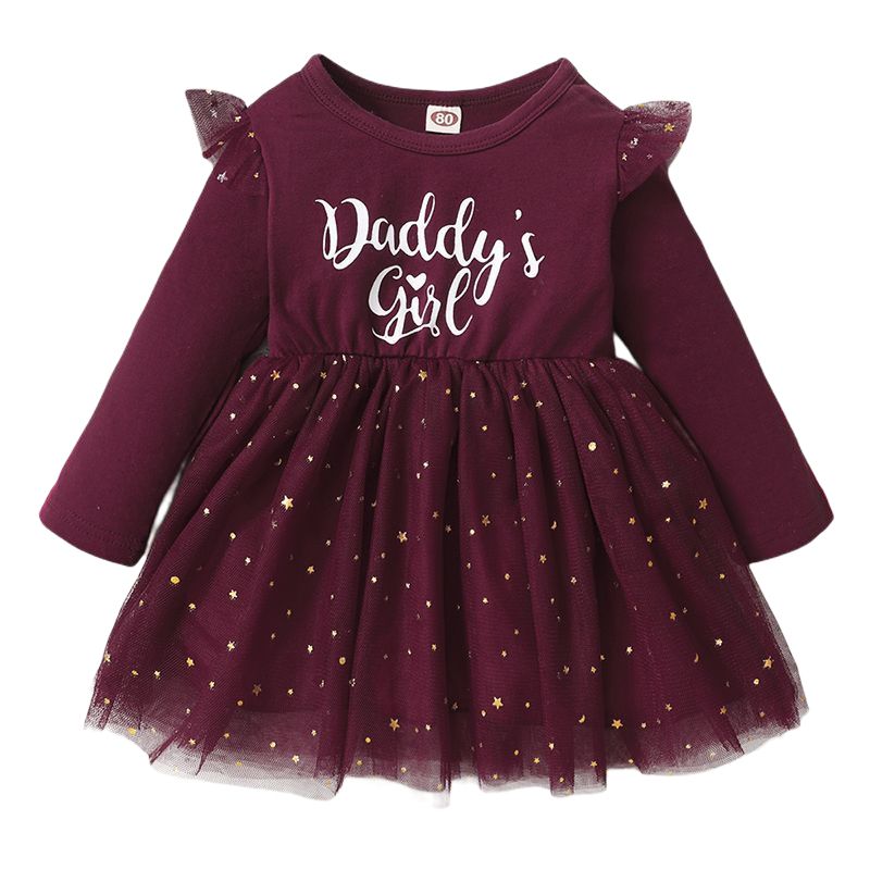 Buy DADDY'S GIRL Baby Girls Long Sleeve Golden Star Sequins Princess Dress -Burgundy in Nigeria