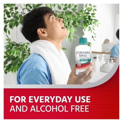 1. Corsodyl Fresh Mint Daily Alcohol-Free Mouthwash is a daily gum care mouthwash