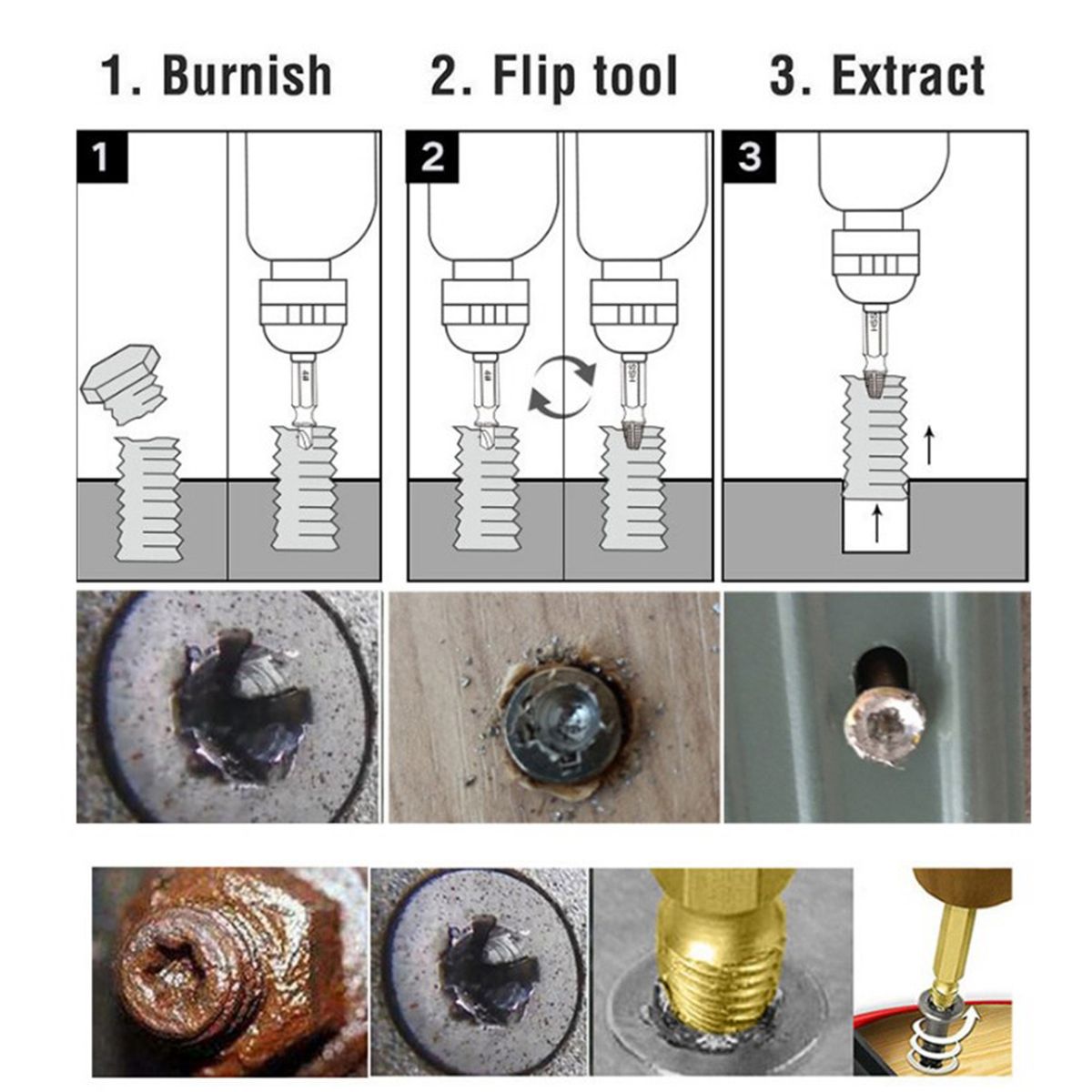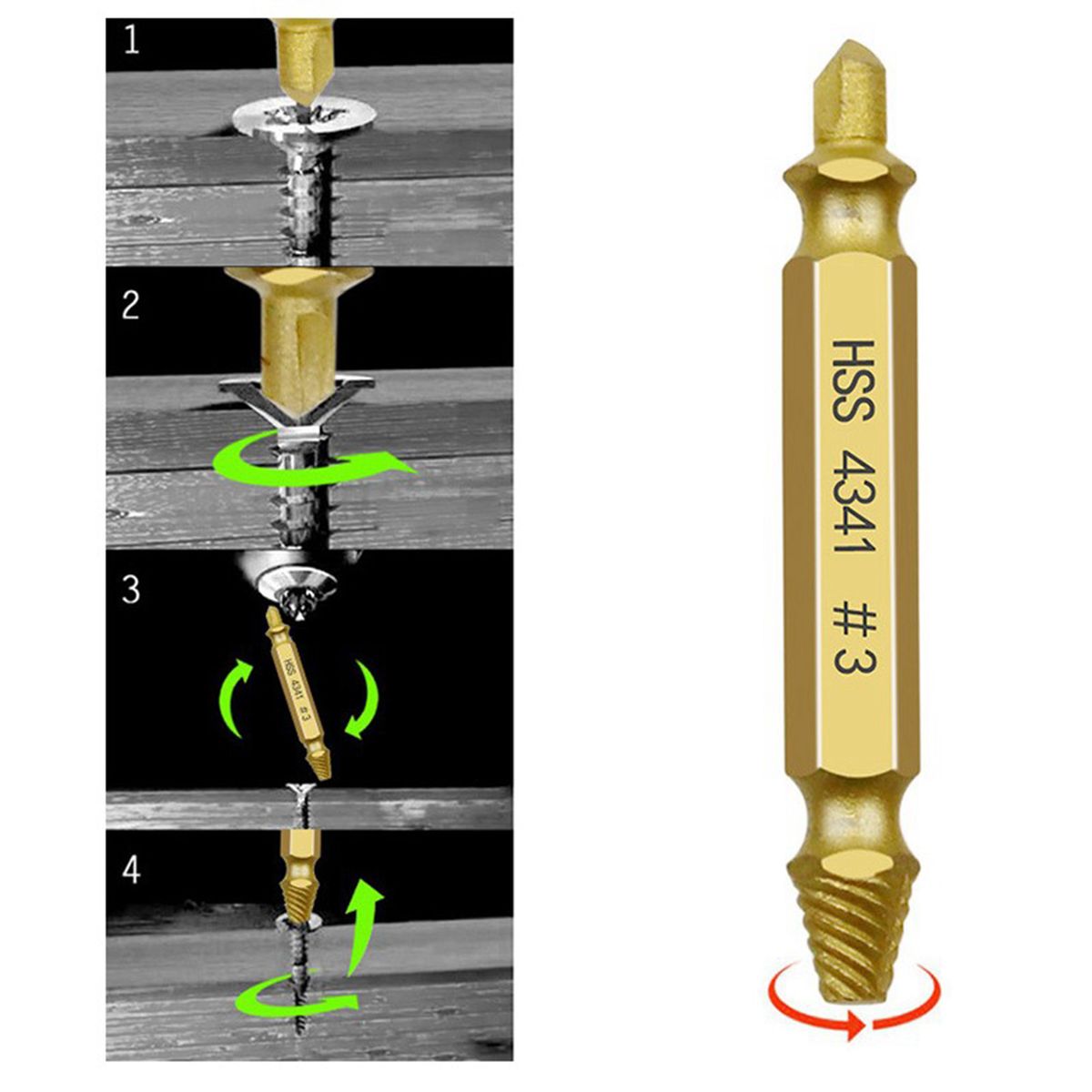 Easy to Use: Use the drill bit to drill a hole in broken screws. Change to use the extract bit with the same size. use the drill and take out the broken bit.