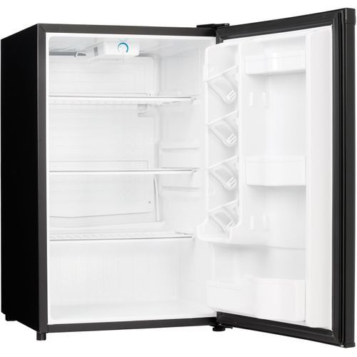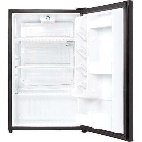 The Danby Designer line of compact refrigerators is dedicated to being well built, easily maintained and convenient. The DAR044A4BDD-6 model features 4.4 cu. ft. (124 L) of cooling capacity making it the perfect fridge for spaces such as dormitory rooms, wet bars, rec-rooms, dens, workshops and basement lounges. Integrated door shelving with tall bottle storage makes storing all your additional drinks and snacks easy. Accessories can be stored on the scratch-resistant worktop and there's no need to defrost the unit as it's done automatically. This appliance also comes with a mechanical thermostat and offers 2.5 strong wire shelves for maximum storage versatility and optimal cool air circulation. Both left and right-handed users will love the convenient reversible door swing and the integrated door handle. This mini fridge is designed to blend with any decor style seamlessly.