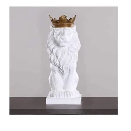 Abstract Gold Crown Lion Sculpture Resin Figurine Home Decor Gold 13x19x36cm/5.1x7.5x14.2inch.This is a beige coloured sitting lion figurine for the lovers of ornaments collectibles. The package content include 1 sitting lion figurines and should be kept away from fire.Features & detailsPerfect gift for those that love collectibleGreat design and craftmanshipPackage Contents: 1 Lion Figurines.Hand carved in a Fair Trade workshop in Bali, this beautiful Lion makes a unique gift or ornament.Carefully carved from sustainable material the Lion strikes a majestic pose showing the attractive grain of the material. This figure of an inspired Lion modelled standing on an oblong base with a paw resting on sphere. The figure is well modelled and decorated with enamels. Lions are the national symbol of England and were a popular subject in the late 18th and early 19th century. The burgeoning growth of Empire and strong national pride after many military and naval victories over the French gave extra significance to the symbolism. Strong masculine presence makes the figure ideal decoration for a library or office adding a touch of grandeur although it would take its place in various settings.